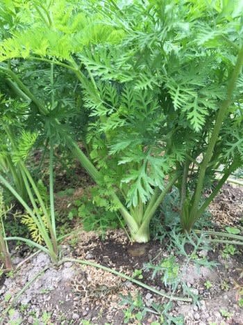 葉が茂りすぎのニンジン。肝心の根は成長しているのか?
