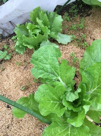 白菜は順調に育っている。白菜とレタスはベストコンパニオン。