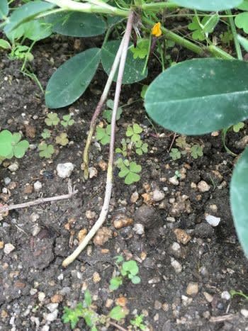 収穫までもう少しの落花生。土の中でどんな顔をしているのか楽しみ。 葉っぱや茎の部分が少し枯れて、黄色くなってたら収穫のサインだそうです。