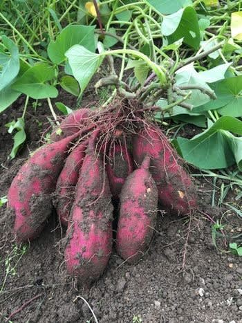今秋のハイライトは、頂いた苗で収穫できたサツマイモ。施肥なしでよく育ちました。