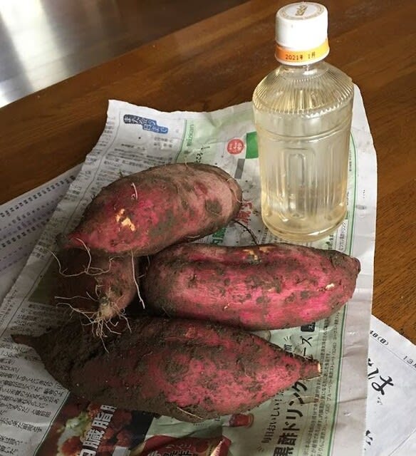 直ぐに食べず、新聞紙に包み段ボール内でデンプン質が糖分に変わるまで待つ。苗を頂いた友人からのアドバイスです。因みに彼女は画像を見て「うわー立派!」とほめてくれました。嬉しい。