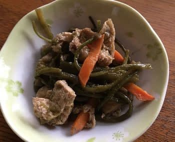 おまけにツルにある葉柄を佃煮風に煮てみた。いける!
