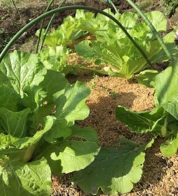 虫よけにかけていた寒冷紗をはずして、寒さに打ち勝つ野菜に成長させたい。片付けができていないのは、支柱などを整理整頓させる簡易な棚を作ろうと計画中。お手本はこれ