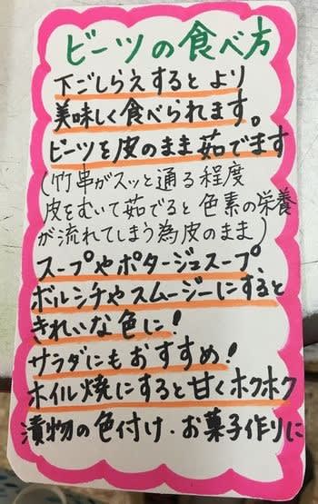 余談1:最近友人からビーツを頂き、かなり栄養価があると評判だそうです。