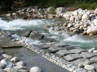 その1:中房川はすっかり濁流の面影がなくなり、家族連れが水遊びしていました