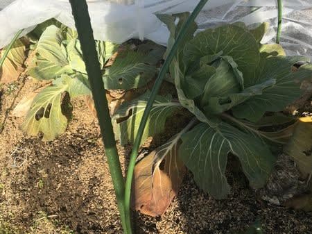 キャベツは6玉中5個健在だがいかにも葉が固そう。