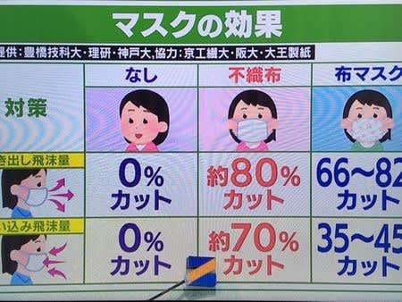 先日テレビの報道番組で「マスクの効果」なる映像をスマホ写真にとっておいた