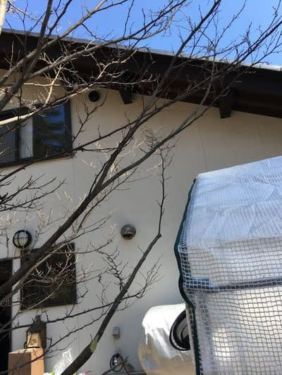 裏庭のブルーベリーとエゴノキの間にピタ!