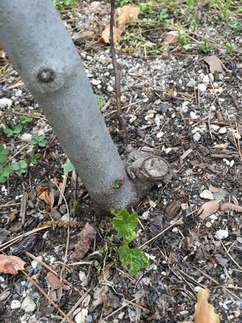今年はなぜかレンゲだけでなく2019年に植えた運の悪いイチジクに勢いが出始めている。細い枝の先端に黄色の芽がついたのが4/8。今日は根元に