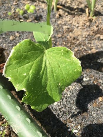 と早速Web頼りで、酢・焼酎・木酢液で作る自然農薬とわかりました。キュウリの葉を見に行きます。