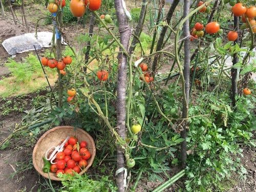 結果15本の株となった。しかしどれも芳しくなかったが、ここにきてトマトは面目躍如。これはもともとの畝で落花生とバジルとパセリを混植していた。