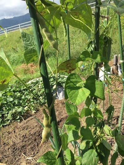 空畝の隅には昨年の残り種を植えた「穂高菜豆」2株。実をいくつかつけているので、種取り用に現存とした。