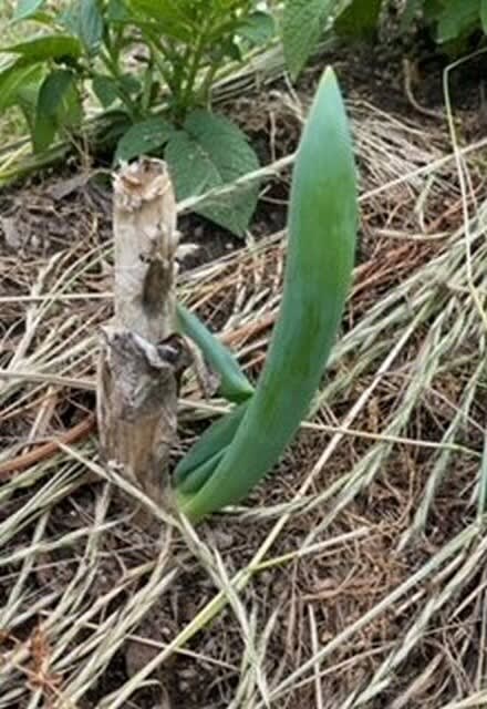 奥の松本一本ネギは4月に植えたもの。1回目の土寄せが済んでるというのにのんびりしている。