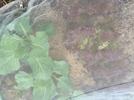 昨年は結球しなかったキャベツ。レタスと混植して防虫対策も万全に。今年は気合を入れているが結果は?