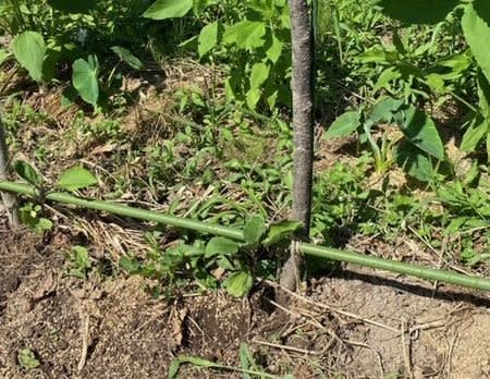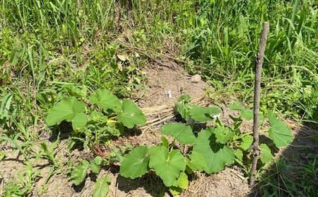 22年の春、ダメ元で植えたところ4株が成育したので狭いが専用畝を作り定植。