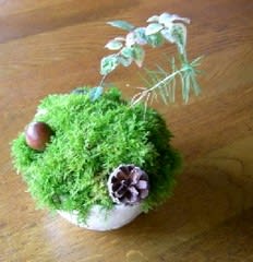 そこへどんぐり・松かさを乗っけて、我流”こけだま”完成。大阪のともちゃんが教えてくれました