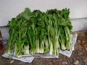 畑に同行して野沢菜を刈る。ふたかかえの約12キロの菜を頂く。今夕の洗いは断念する