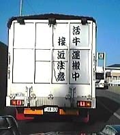 以前牧場から出た牛をトラックの荷台に積んで、柵のある、つまり外界の空気を吸い景色を見ながら、運搬される数頭の牛を見たことはあるさ。