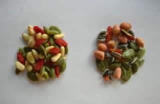 残念でした!あとで材料名みたら、落花生、カボチャの種、ヒマワリの種、アーモンド、クコの実、カシューナッツで、これだけなら食べてみる。が