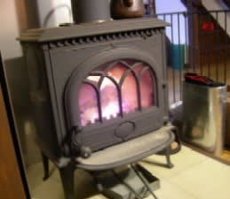 荷物を放り出し薪ストーブを焚き、床暖房を点火する。なかなか温度あがらない。