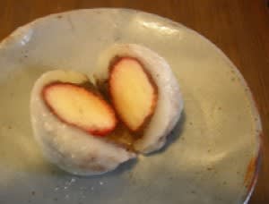 昨年秋、林で拾った栗を餡にし冷凍保存しておいたのが、ここにきて日の目を見る