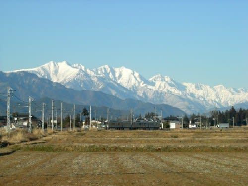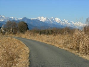 時間とともにぐんぐん上天気になり、北アルプスの白さが恋しくなり隣村松川へ散歩に出る