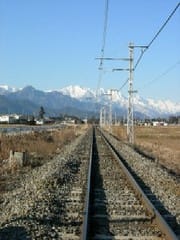 写真左:線路は続く日本海糸魚川まで  写真右:我が家へ続く道