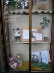 覗くと建物に不似合いな英文とお洒落なイラストが飾ってある