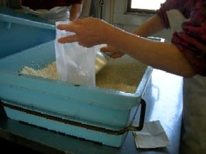 ここは大切な行程なので私の出番なし。しかし自宅用だけ無理にさせてもらう(因みに我が家分はこの写真の半分です)