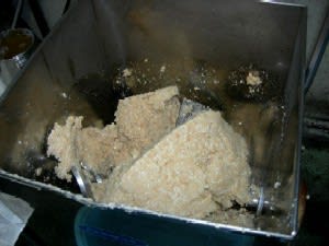 ○さて最終工程。こうじ・塩・ミンチ状の豆を攪拌する