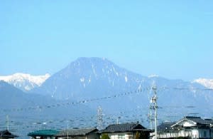 加工所の窓からもわが有明山が一望