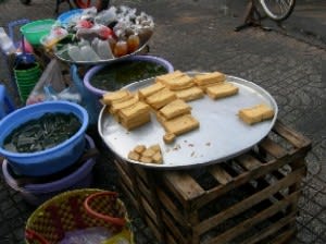 写真右:すぐそばで厚揚げ豆腐を揚げて売っていた