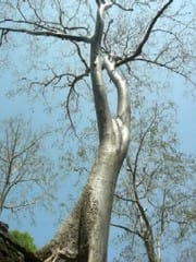 写真右は幹が銀色に輝いて見える大ガジュマルの木