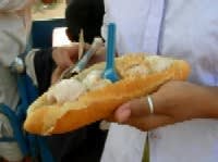写真右:おいしそうなコッペパンにアイスクリームをはさみ、色付けした何かをトッピング