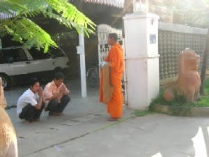 日本でも托鉢修行はあるんだろうけど、最近はこういう光景は見ないなあ。