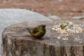 右:今年春のニューフェースは”カワラヒワ”。嘴が白っぽいのと、飛んだとき羽が黄緑色なのが特徴。