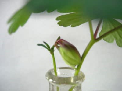 庭のオダマキを花瓶に挿すためカットした残りを、シビン形の小ぶりなびんに挿しておいた(分家の蕾)