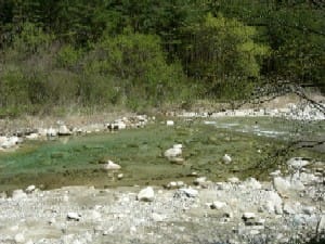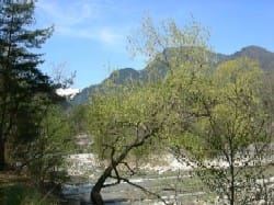 山あいを流れる中房川の緑の水面はゆらゆら揺れていた