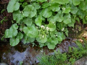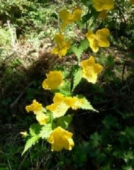 左:なにげなくある小川そばのワサビ畑 右:目に鮮やかなヤマブキ