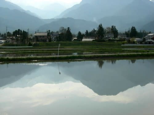 今年もそろそろ田植えが始まる。苗が植えられるまでのひとときの風景だ