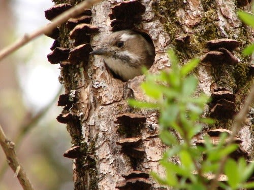 いかにも古そうな木肌でしょ。コゲラとは保護色の間柄