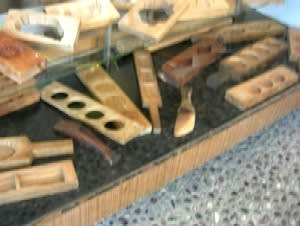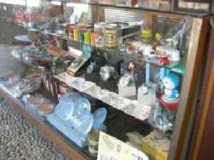 隣の陳列ケースには改装前の菓子店で使われていた焼型と昔おもちゃが。
