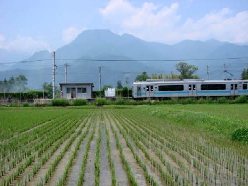 田圃に映る大糸線車両を撮ろうと、時刻表で確認しいそいそと出かけたのだが、この始末。