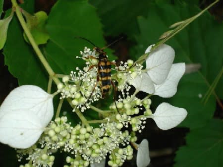 そうこうしているうちに、中房川堤防のイワガラミは装飾花びらが4枚。もう・・・