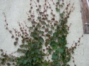 左:土蔵の壁にツタも悪くない。おやっ頭の上からカッコウの啼き声が聞こえてきた