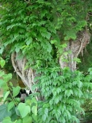 左:杉の老木にパラサイト新葉類(新人類のもじり、無理があるなぁ)