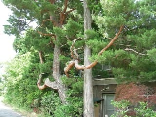 右:なんじゃ、この松は・・・・。本体は相当年代モノに見えるが脇から青々と。かなりのインパクト