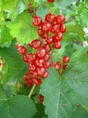 左:見慣れない花だけど清楚 右:ルビーのように輝くスグリ
