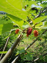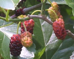 ■帰路、林の入口に実のなる木を発見。桑の実らしい。それならジャムか果実酒か