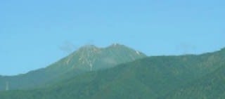 穂高から常念岳はこのように見えました(ふたこぶの左の▲)